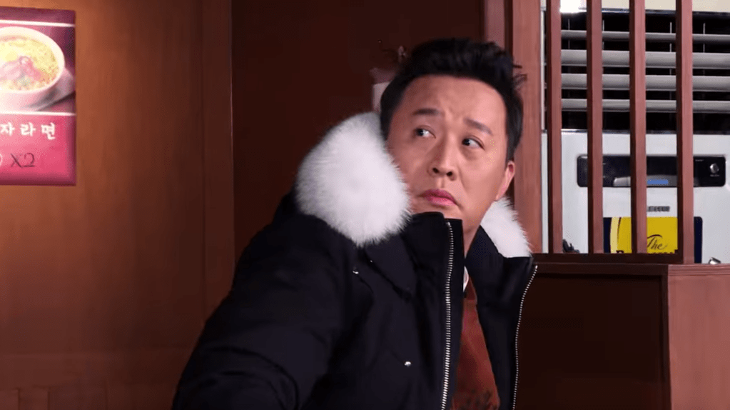 When the group gets off the bus, they find a note on the bus stop sign. It reads, “Bring the microchip. The Pororo that drinks coffee knows.” (Pororo is a South Korean cartoon character that is SUPER popular here – he’s a cute little penguin with a helmet and goggles.) Kwangsoo inadvertently makes up for his bus blunder when he runs to a nearby cafe to use the bathroom. There’s a giant Pororo statue outside, and he discovers claw machine games with stuffed Pororos inside. The idea is to play the claw machines to get the four Pororo plushies, because each one has a piece of paper that will reveal an address of where they’re supposed to go.