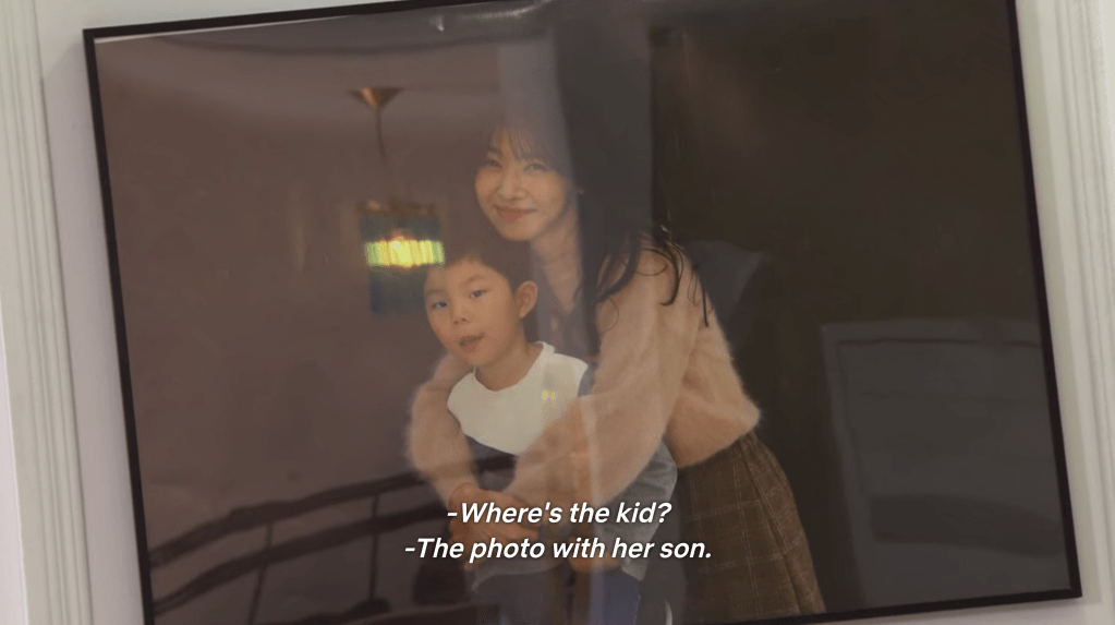 The team also finds the victims’s phone and reads a text conversation with her ex-husband Min Sungwook. Contrary to what she had told Seunggi, her ex’s messages don’t seem like he was threatening her. It sounds more like he was worried about her living in that specific area, and he feared something would happen to her and/or their son. The texts reveal he had found another house and was trying to convince her to move there. They call him and inform him of his ex-wife’s death, and he says that he’ll be right over. (He also confirms that his son is at kindergarten and shouldn’t be in any danger.)