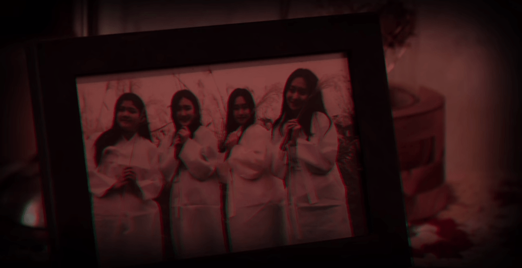 I have a theory about some of this stuff, but it’s 100% speculation on my part – so please don’t take it as fact or canon! My idea goes back to the different pictures that the team found at Hyewon’s house. I already put the one of Park Yido and the girl in the post, so let’s call that Photo A. But there were two group photos, which I’ll show below. There’s one of five young women with three crossed out, so we’ll call that Photo B. And then there’s one of the four girls central to the story: Sohyun, Jeongah (Stephanie), Hyewon, and Jiyeon. We’ll call that one Photo C.