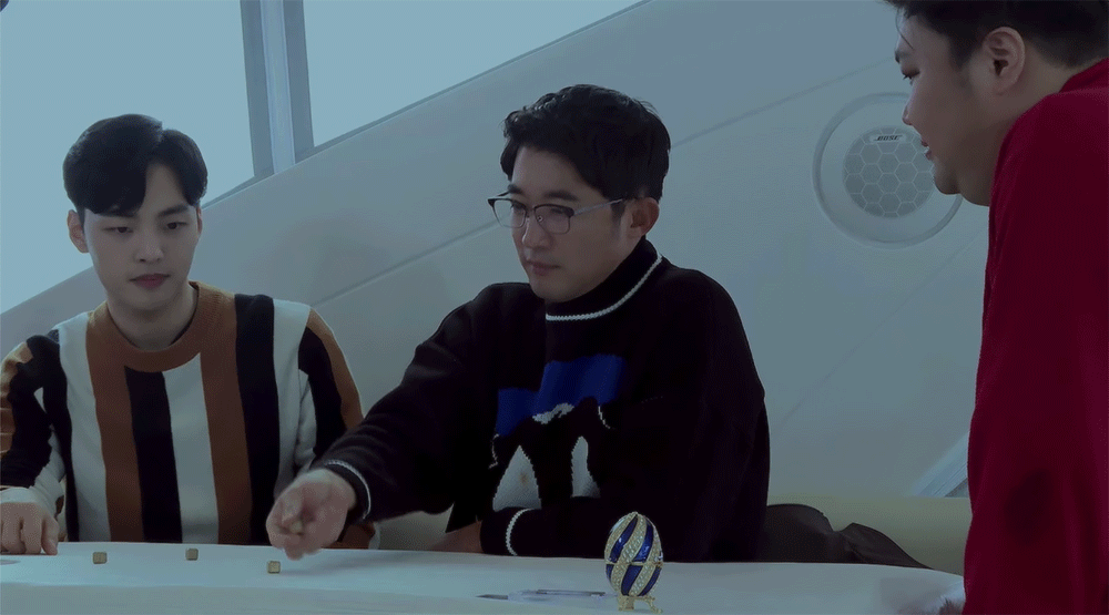 The “Jelina” in the will is the name of the chairman’s yacht. And who should be lounging on it but our favorite sketchy character Tae Hangho. Apparently he bought the yacht from Minjae’s father, and it’s registered under his name. Since no one has ten thousand dollars, they have to play another traditional Korean game against Tae Hangho to get their clue. This time, it’s gonggi. Per usual, I’m not familiar enough with Korean culture to fully explain the rules, and you don’t *really* need to know them to enjoy the episode. But to simplify things, I’ll say that it looks kind of like jacks. There are five small stones, which you throw onto a flat surface. You pick one stone and toss it, then grab the others while that one’s in the air. It looks like there are different stages where you pick up one at a time, then two at a time, etc.