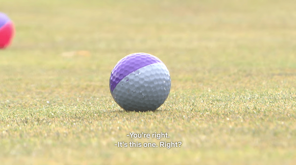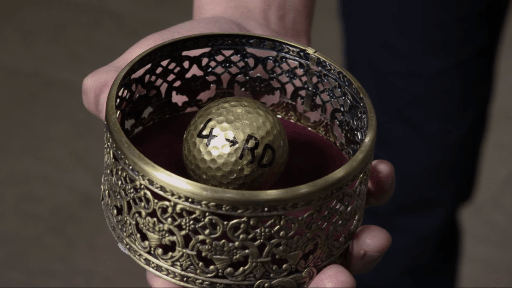 When the teams win, they are shown a golden golf ball that says “4 -> RD” as their clue.