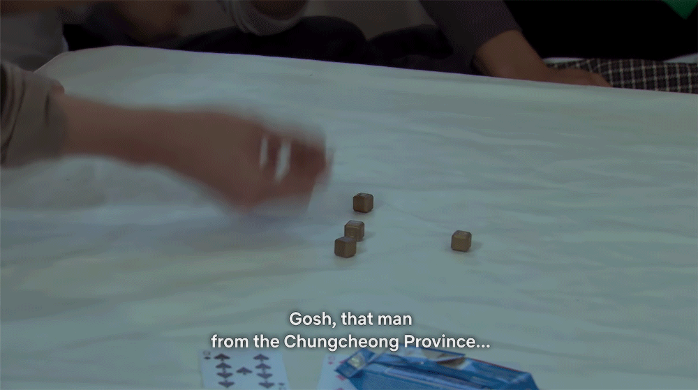 For this specific game, each side draws three playing cards and adds them up. That total is their designated number of points they need to win. Whichever side reaches their number first is the victor. I’m not 100% sure how they calculate points in gonggi, but I think it has to do with the last level. After you do the stages I previously mentioned, you throw all the stones in the air at once. You flip your hand over and catch as many as you can on the back of your hand. Then you then toss them again and grab them midair, and whichever ones you grab count for the points. (Again, this is just what figured out from watching the show. I’m sure there are more complicated rules and instructions in the official version, so please don’t take my word as gospel.)