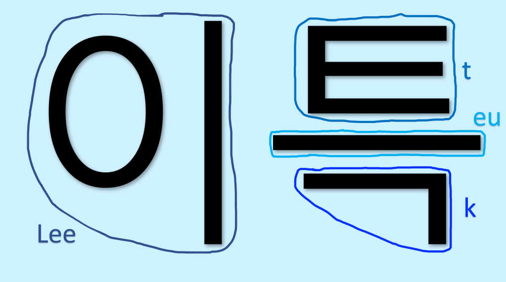 - The most important thing to note here is that there’s actually no “l” sound in the Hangul version of “Leeteul.” As you can see, the first syllable has the vowel “ㅣ” – which is Romanized as “i,” but pronounced as “ee.” The first letter is the consonant “ㅇ” – which is pronounced silently in this case. If this syllable were pronounced as “Lee” in Korean, then it would have the consonant “ᆯ” at the beginning. The reason why it’s written as “Lee” is because that was the common spelling back when South Korea was using an older system of Romanization. You might have also heard of the last name “Lee,” which is the 2nd most common Korean surname. It’s the same principle – it’s Romanized as “Lee,” but it’s actually “이.” I’m not really sure what the initial reasoning behind spelling it like that was, but it’s stuck around over time.