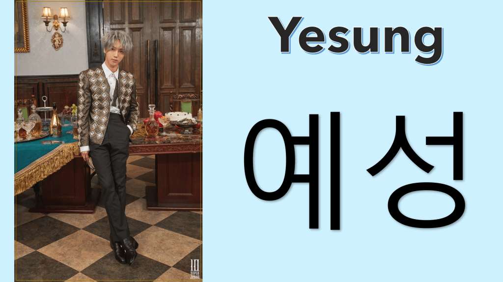 - Yesung is one of the stage names in this post. (But I do have a student who’s also named Yesung!) It’s pretty straightforward, so I don’t have many notes on it – just that the “u” here is pronounced the same way as “eo” and not “oo.”